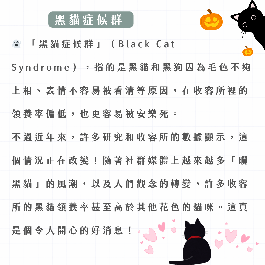 🐾 毛孩冷知識 #4:收容所擔心黑貓被當成「萬聖節道具」! 這背後的原因令人心疼。收容所擔心,有些人可能只是一時興起,想領養一隻黑貓來搭配萬聖節的恐怖氣氛,把牠們當成「活生生的派對道具」。等到節日一過,新鮮感沒了,就可能將牠們棄養。更可怕的是,他們也擔心這些黑貓會被一些有心人士領養,用於不人道的虐待或獻祭儀式。😢